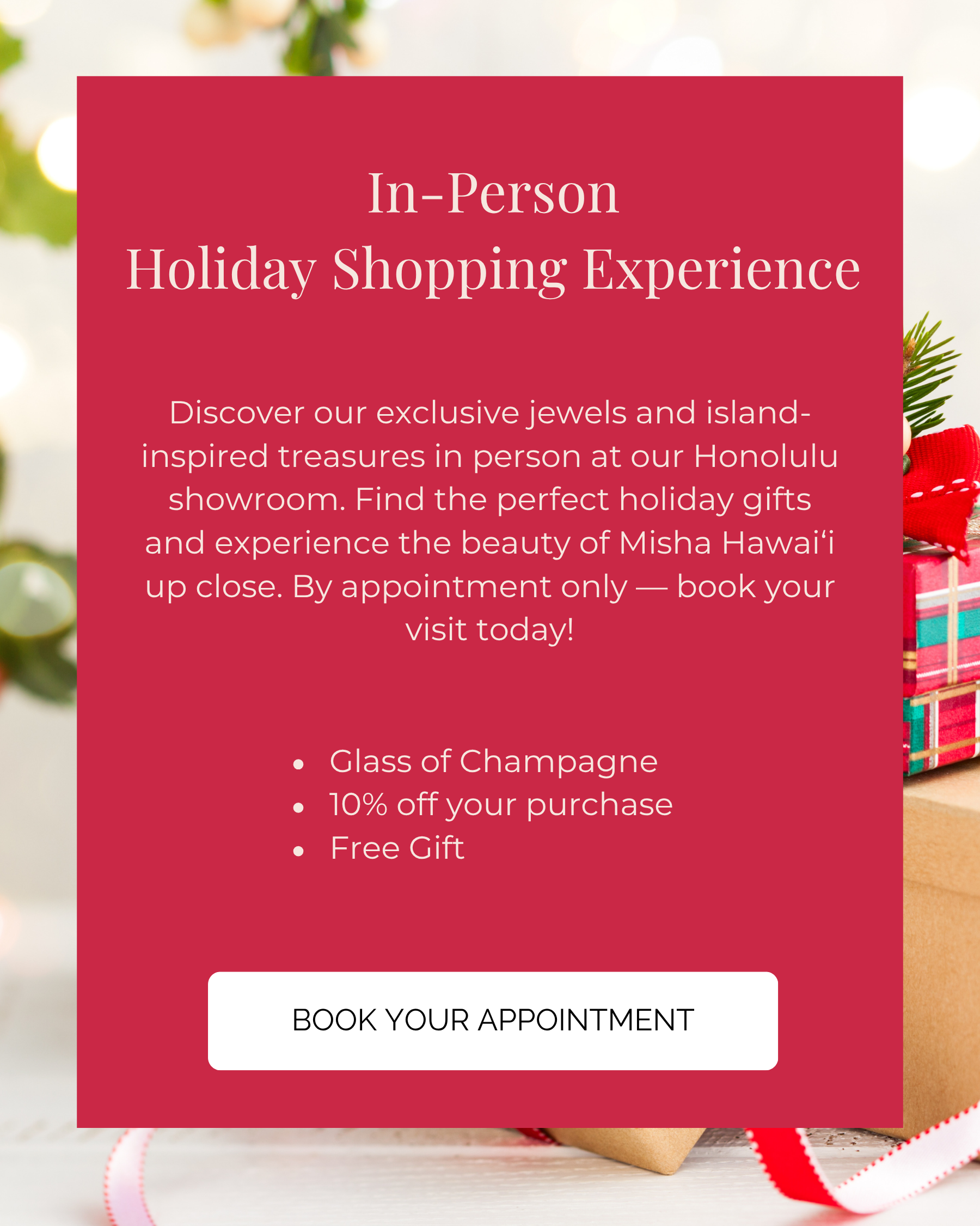 At Misha Hawai'i, every jewelry begins with the ocean. Inspired by the natural beauty of our islands, each piece is designed in Honolulu in our studio with intention. We honor Hawai'i's traditions of artistry and storytelling, creating treasures that celebrate authenticity, individuality and beauty. Women owned, designed in Hawai'i, supported by you.