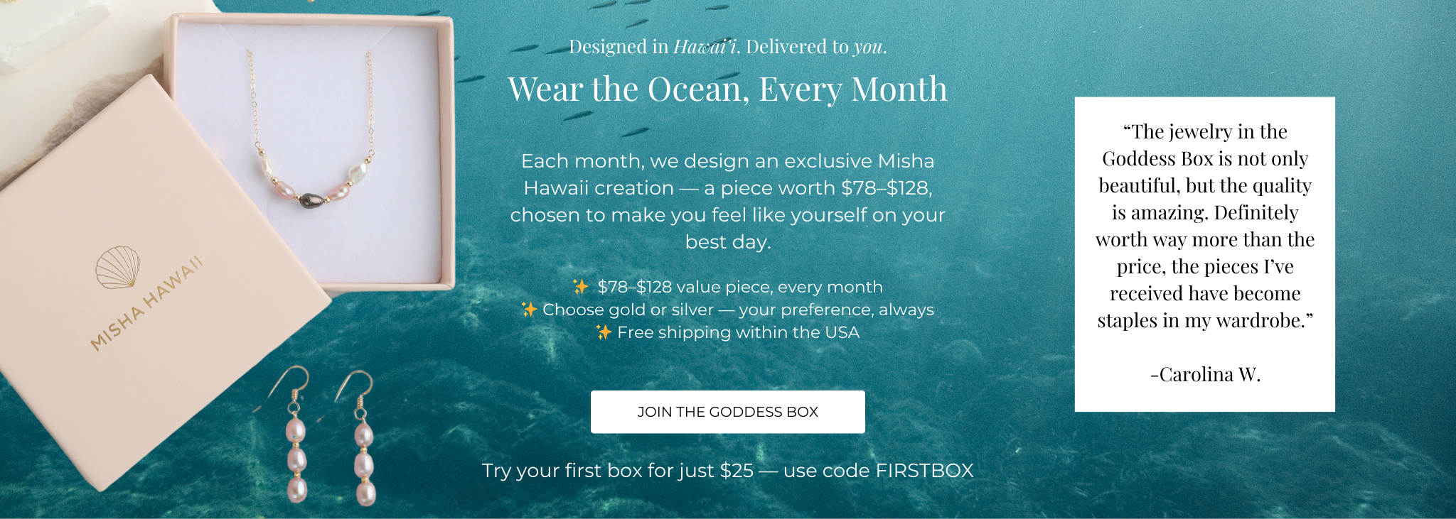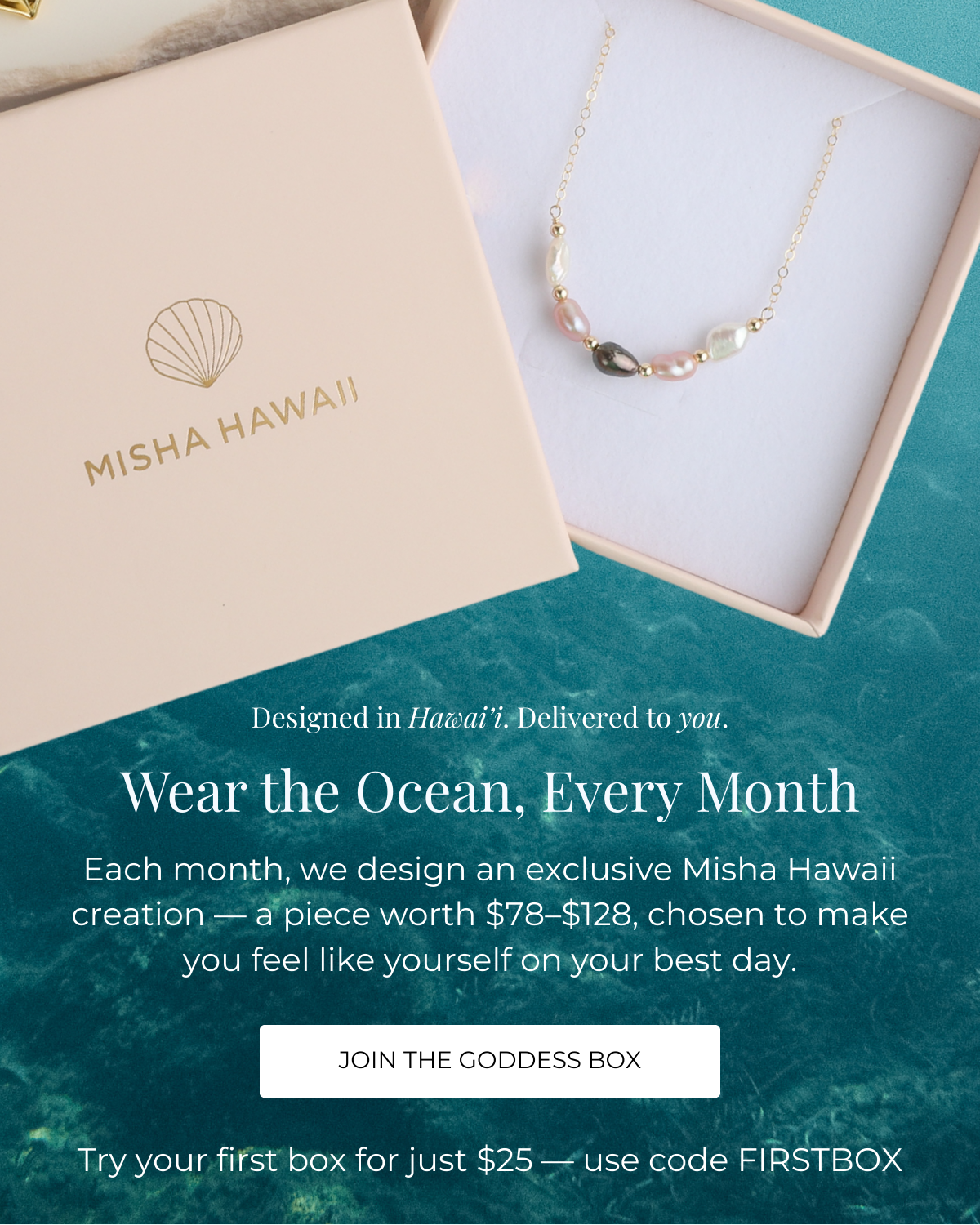 At Misha Hawai'i, every jewelry begins with the ocean. Inspired by the natural beauty of our islands, each piece is designed in Honolulu in our studio with intention. We honor Hawai'i's traditions of artistry and storytelling, creating treasures that celebrate authenticity, individuality and beauty. Women owned, designed in Hawai'i, supported by you.