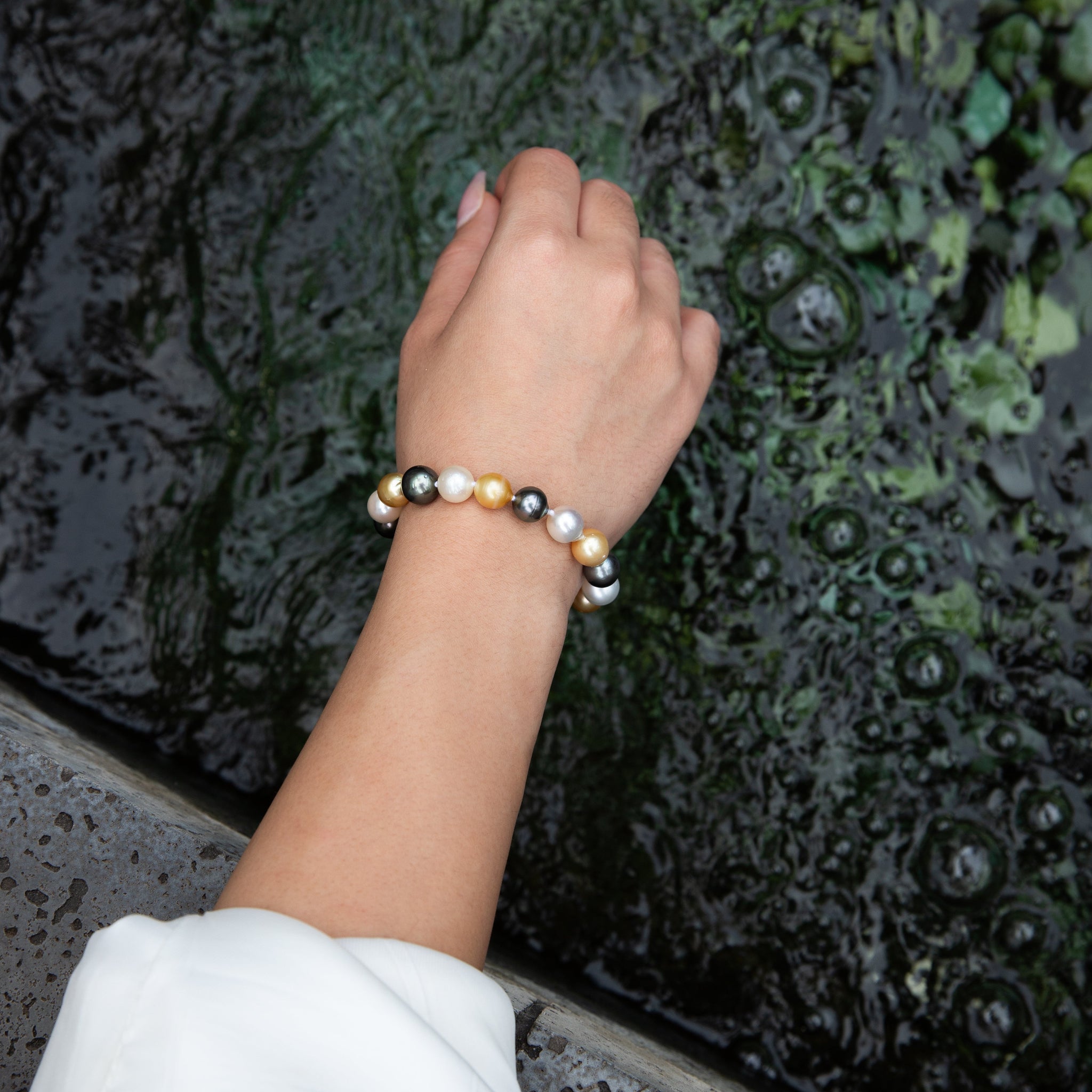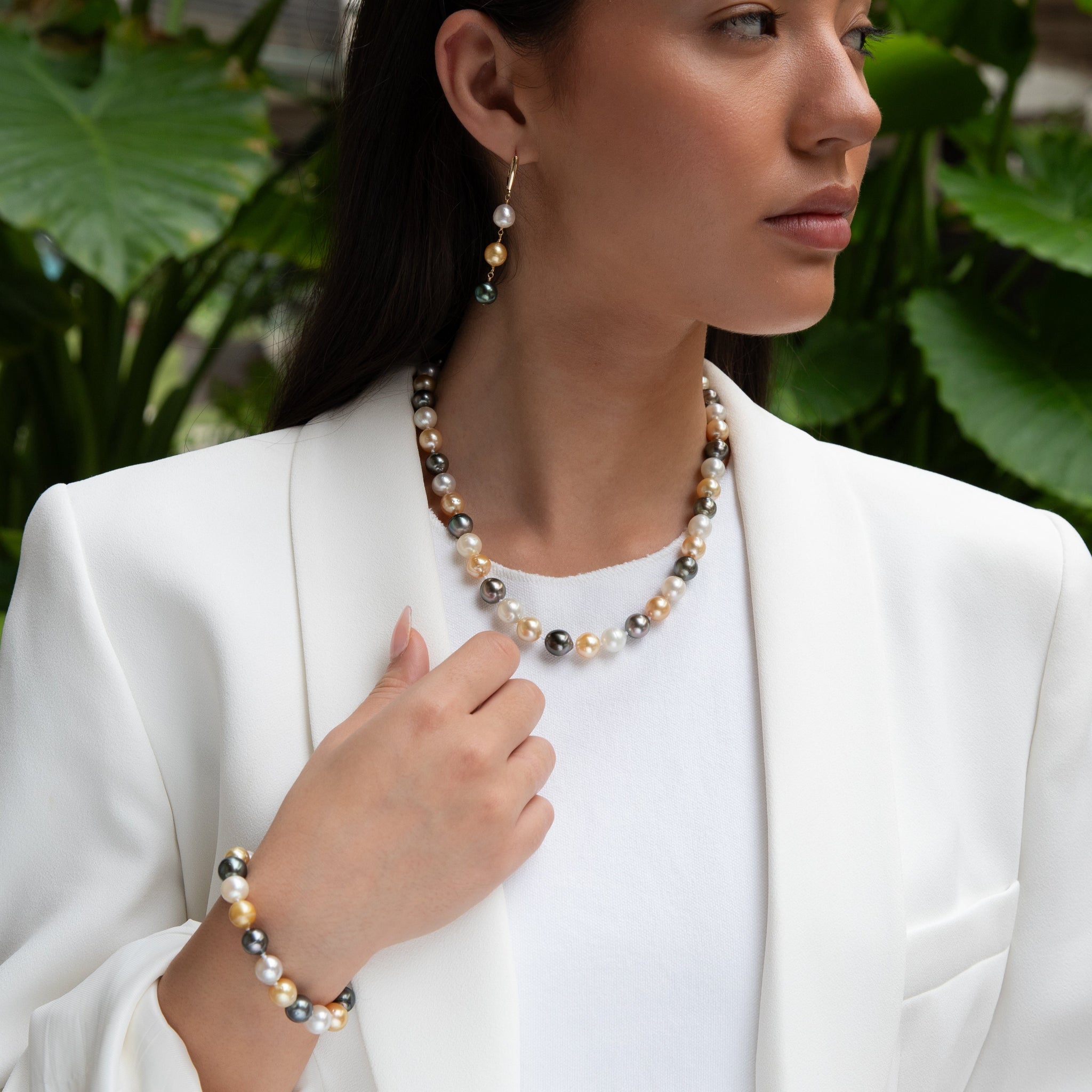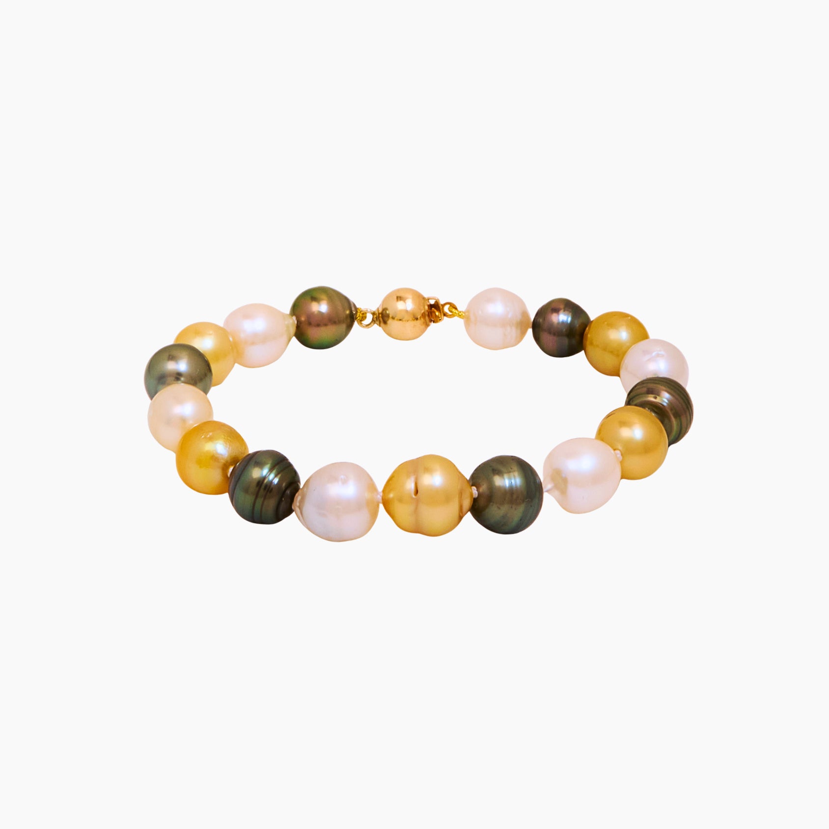• Semi-Baroque Golden South Sea Pearls, White Edison Pearls and Tahitian Pearls