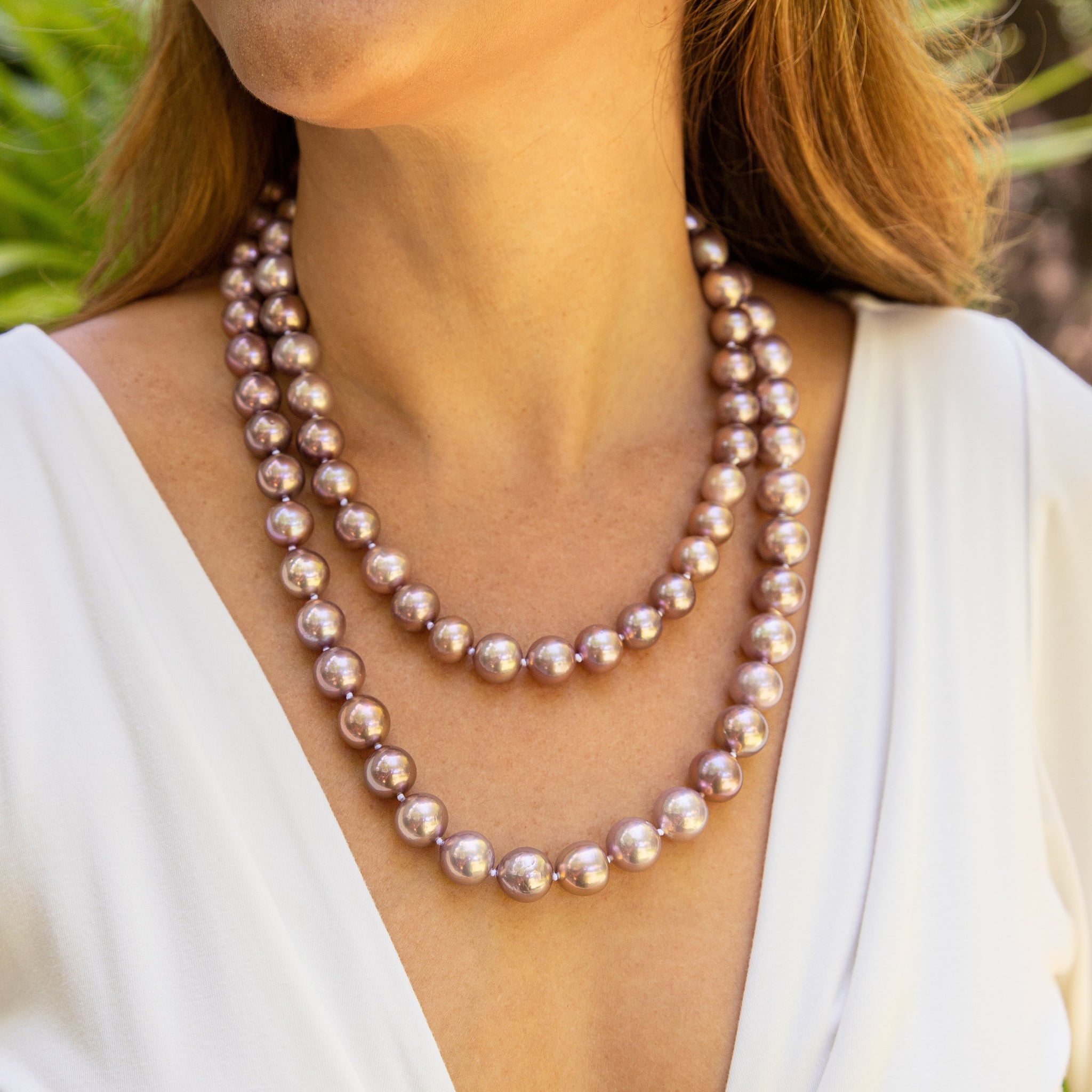 An exquisite strand of feminine elegance, the Sabine IV Rope Strand features 75 off round AAA Pink Edison pearls with exceptional luster, radiating beauty and timeless sophistication.