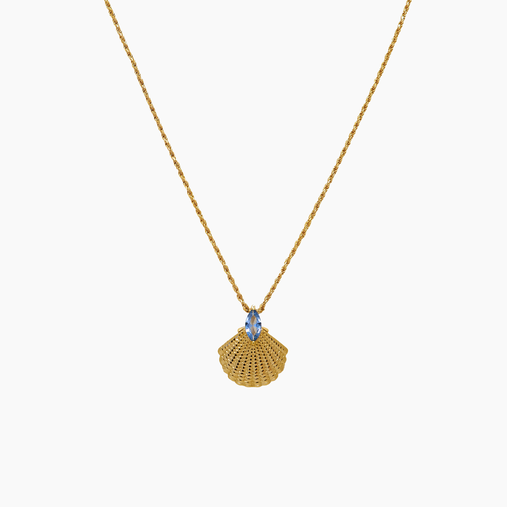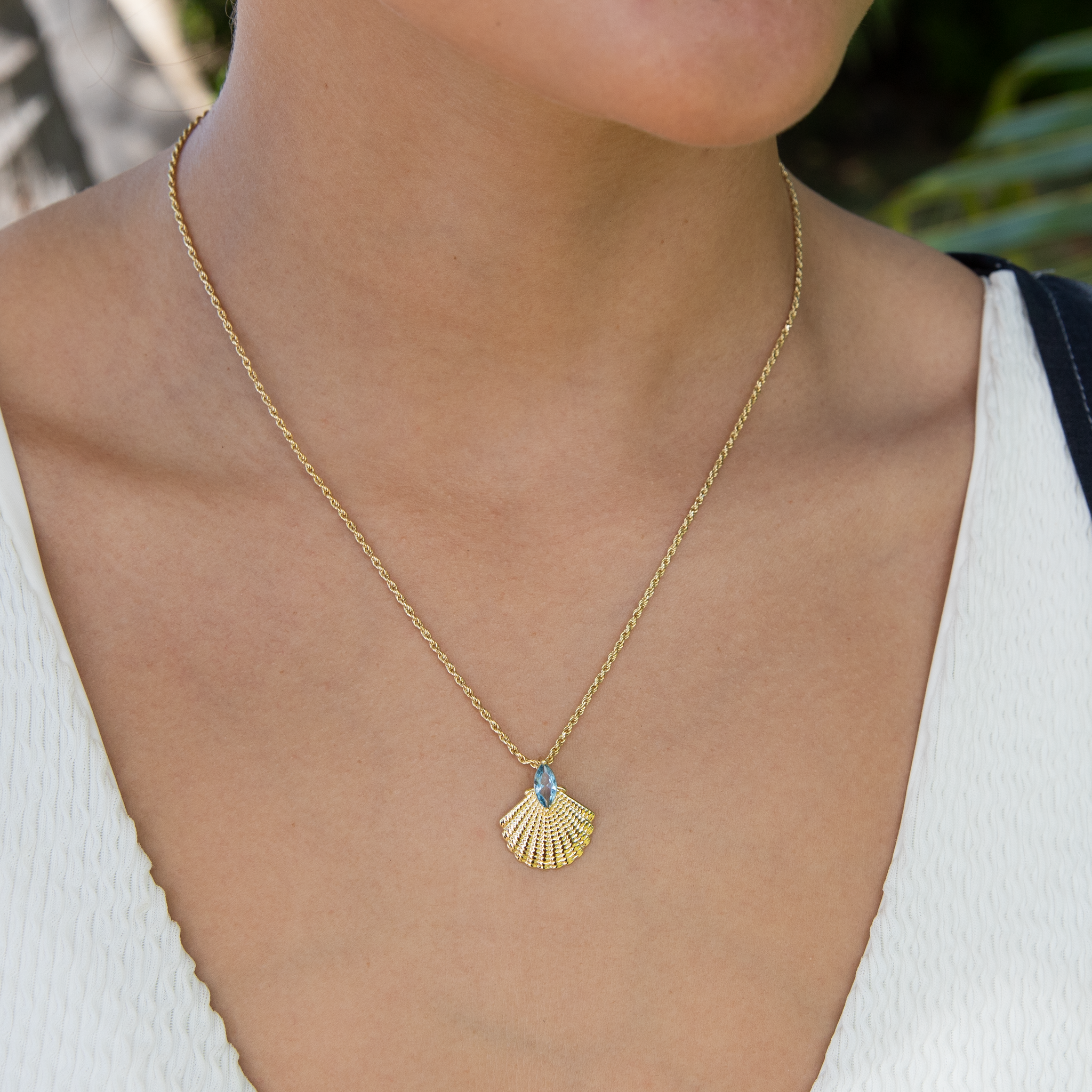 - Beautiful casted shell with a marquise aquamarine CZ at the top